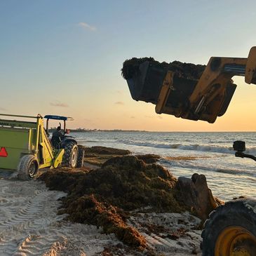 Renta de maquinaria y operación de tractores, manipuladores y retroexcavadoras para limpieza de playas por sargazo.